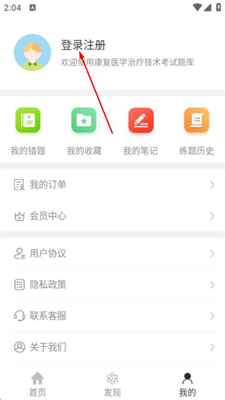 1、打開康復(fù)醫(yī)學(xué)治療技術(shù)智題庫,點擊我的,進入個人中心頁面。