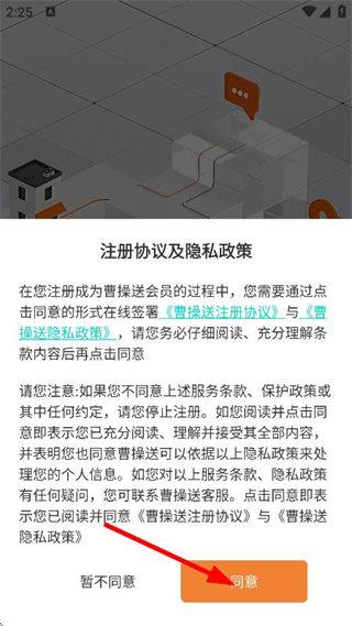 1、在注冊(cè)協(xié)議及隱私政策彈窗中,點(diǎn)擊同意,進(jìn)入登錄頁(yè)面。