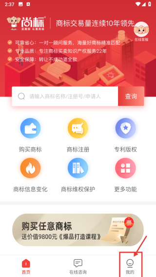 1、打開商標服務類APP首頁,點擊底部我的選項,進入個人中心頁面。