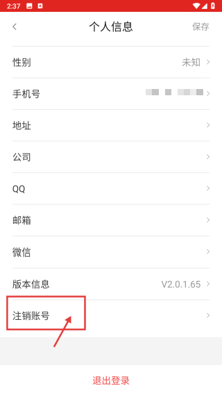 3、在個人信息頁面,點擊注銷賬號選項,進入申請注銷賬號頁面。