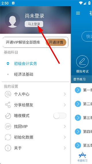 2、在側(cè)邊欄,點擊馬上登錄,進入用戶登錄頁面。