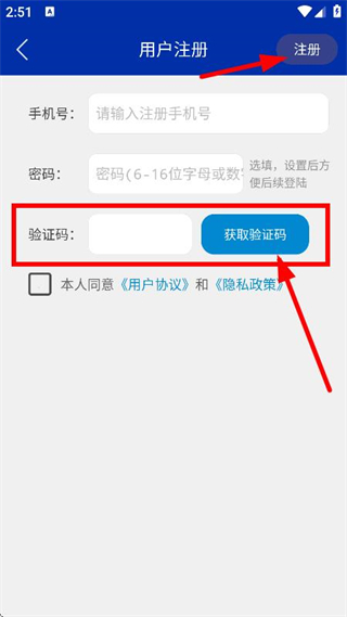 5、隨后獲取驗證碼并輸入,點擊注冊,完成賬號注冊操作。