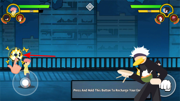1、在格斗游戲中,長按左側(cè)能量按鈕可充能,能量是釋放技能的關(guān)鍵資源,充能操作能為后續(xù)技能釋放提供保障。
