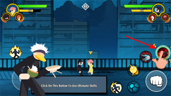 3、點擊終極技能按鈕可釋放終極技能,終極技能是強力的攻擊手段,在關(guān)鍵時刻使用能扭轉(zhuǎn)戰(zhàn)局,快速擊敗敵人。