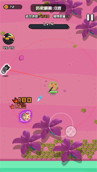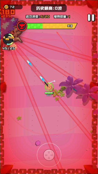 4、當(dāng)進(jìn)攻波數(shù)提升到一定階段,會(huì)觸發(fā)特殊戰(zhàn)斗場(chǎng)景,需更靈活地操控角色,躲避密集攻擊,消滅強(qiáng)力怪物,挑戰(zhàn)更高分?jǐn)?shù)和關(guān)卡。