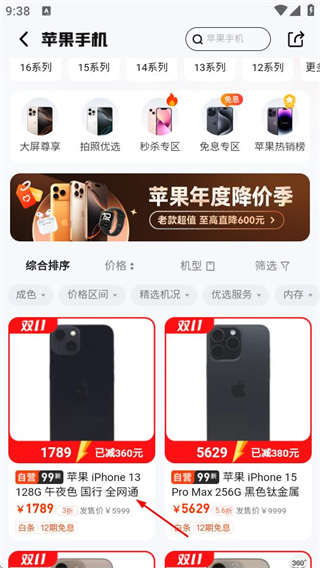 3、在列表頁面,點擊心儀蘋果手機如蘋果iPhone13,進入商品詳情頁面。