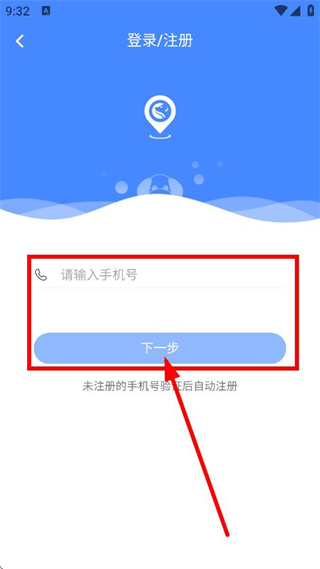 2、在登錄/注冊(cè)頁(yè)面,然后輸入手機(jī)號(hào)后,即可點(diǎn)擊下一步。