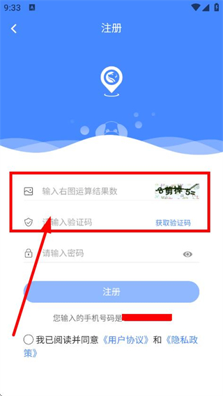 3、隨后我們可以在注冊(cè)頁(yè)面,輸入運(yùn)算結(jié)果數(shù)、短信驗(yàn)證碼。