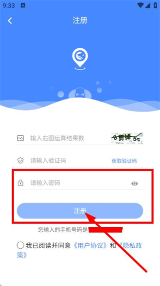 4、在注冊(cè)頁(yè)面,設(shè)置密碼后,點(diǎn)擊注冊(cè),完成賬號(hào)注冊(cè)操作。