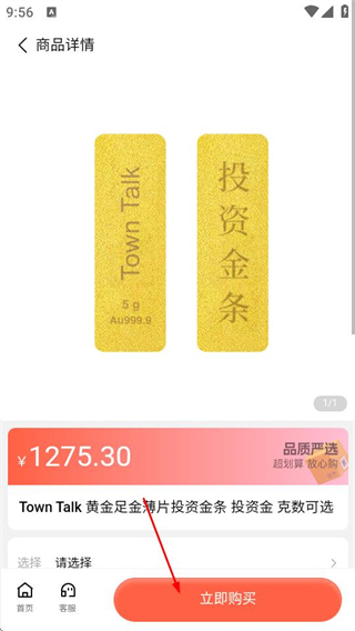 4、在商品詳情頁(yè)面,點(diǎn)擊立即購(gòu)買,可完成黃金商品購(gòu)買操作。