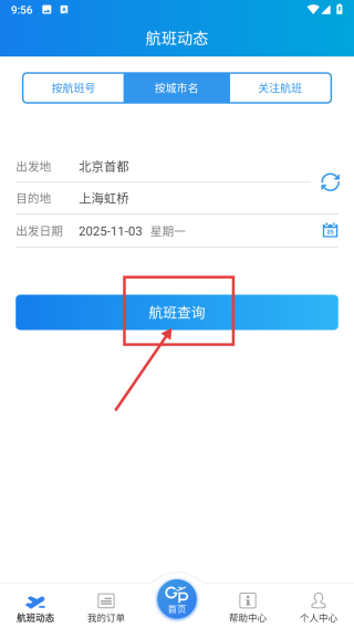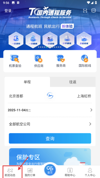 1、打開民航服務(wù)類APP,點(diǎn)擊底部航班動(dòng)態(tài)選項(xiàng),進(jìn)入航班動(dòng)態(tài)查詢頁(yè)面。