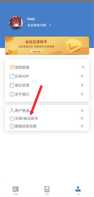 1、打開會(huì)議記錄助手APP,點(diǎn)擊右下角我,進(jìn)入個(gè)人頁(yè)面。