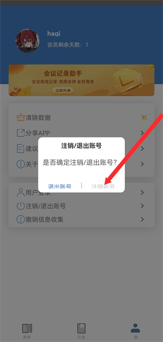 3、在確認(rèn)框中,點(diǎn)擊注銷賬號(hào),完成會(huì)議記錄助手賬號(hào)的注銷操作。