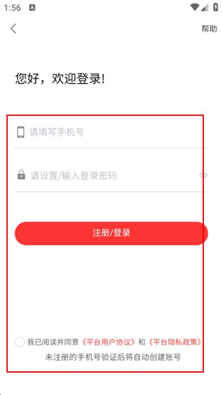 3、在登錄頁(yè)面,填寫信息,同意協(xié)議后點(diǎn)擊登錄,完成賬號(hào)登錄。