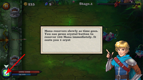 4、點擊左側(cè)水晶按鈕恢復(fù)法力,法力是釋放法術(shù)的基礎(chǔ)資源,及時恢可保障法術(shù)持續(xù)使用,維持輸出。