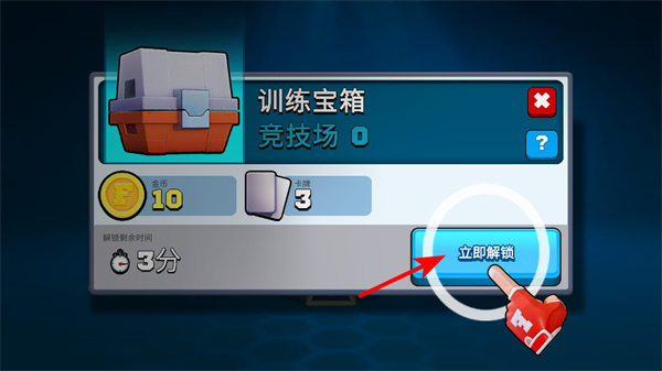 2、遇到訓(xùn)練寶箱時,點(diǎn)擊立即解鎖按鈕開啟寶箱,寶箱內(nèi)的獎勵可助力角色成長,是新手階段增強(qiáng)實(shí)力的重要途徑。