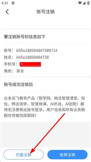4、在賬號(hào)注銷說明頁(yè)面,點(diǎn)擊仍要注銷,進(jìn)入身份驗(yàn)證頁(yè)面。