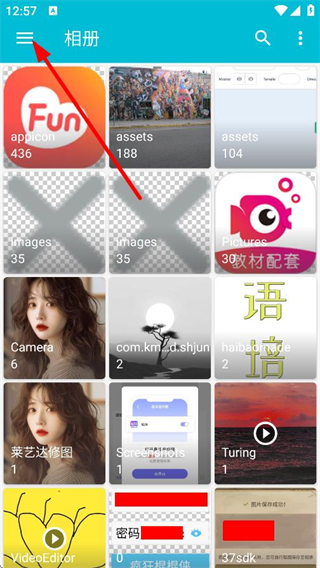 1、在相冊(cè)首頁(yè),點(diǎn)擊左上角菜單按鈕,展開功能列表。
