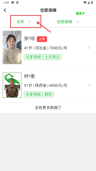 1、打開家政服務(wù)類APP首頁,點(diǎn)擊住家保姆選項(xiàng),進(jìn)入住家保姆頁面。