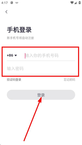 3、輸入手機(jī)號(hào)碼和密碼,點(diǎn)擊登錄,完成賬號(hào)登錄操作。
