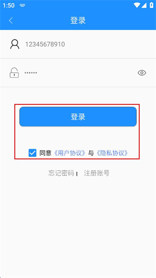 4、勾選同意用戶(hù)協(xié)議與隱私協(xié)議,點(diǎn)擊“登錄”按鈕,完成登錄操作。