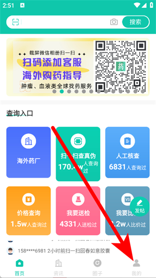 1、打開掌上藥店,點擊底部我的,進入個人頁面。