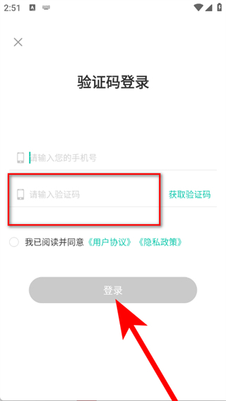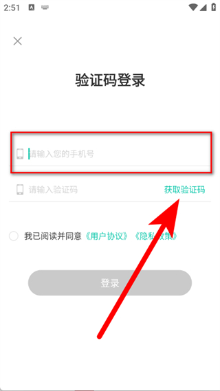 3、在登錄頁面,輸入手機號,點擊獲取驗證碼。