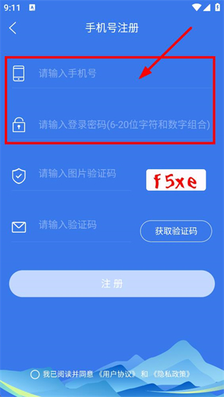 4、隨后我們在手機號注冊頁面,輸入手機號和登錄密碼。