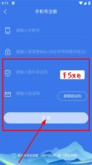 5、輸入圖片驗證碼和短信驗證碼,點擊注冊,完成賬號注冊操作。