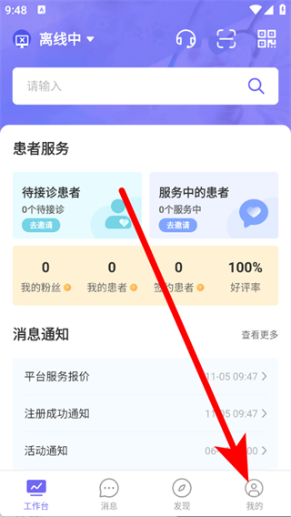 1、打開領(lǐng)醫(yī)未來平臺,點擊底部我的,進入個人頁面。