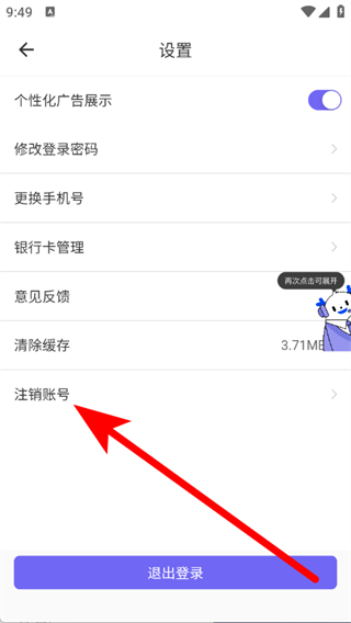 3、在設(shè)置頁面,點擊注銷賬號,進入注銷賬號頁面。
