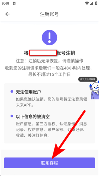 4、在注銷賬號頁面,點擊聯(lián)系客服,按客服指引完成賬號注銷。
