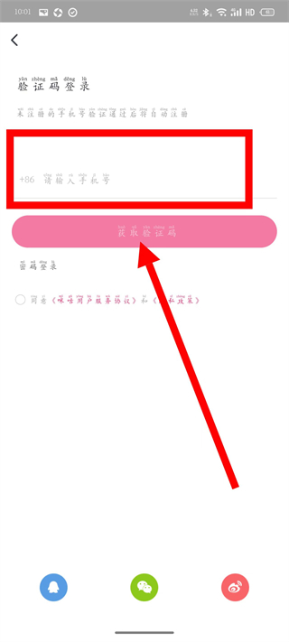 3、在登錄頁面,輸入手機號,點擊獲取驗證碼。