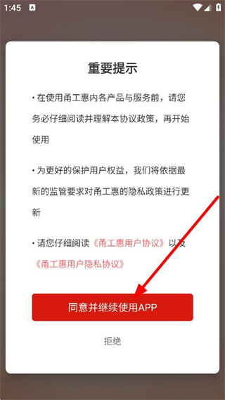 1、在重要提示彈窗中,點(diǎn)擊同意,進(jìn)入APP首頁(yè)。
