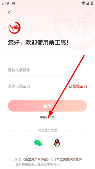 3、在登錄頁(yè)面,點(diǎn)擊密碼登錄,切換到密碼登錄頁(yè)面。