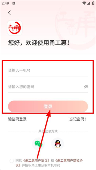 4、輸入手機(jī)號(hào)和密碼,點(diǎn)擊登錄,完成賬號(hào)登錄操作。