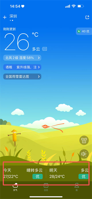 4、選擇后即可查看深圳的天氣信息,如溫度、天氣狀況等。