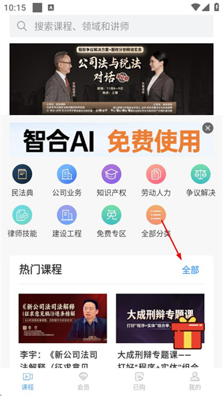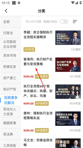 整合海量優(yōu)質(zhì)法律課程,涵蓋民商事、刑事、行政法等多個法律領(lǐng)域,包含實(shí)務(wù)案例解析、法規(guī)更新解讀、職業(yè)技能提升等類型,由行業(yè)資深專家與一線實(shí)務(wù)大咖授課。
