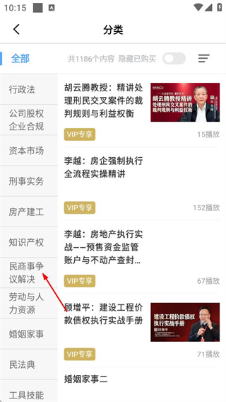 2、在分類頁面,選擇民商事爭議解決分類,進(jìn)入該分類頁面。