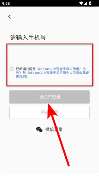 3、輸入手機(jī)號(hào),勾選同意后,點(diǎn)擊驗(yàn)證碼登錄。