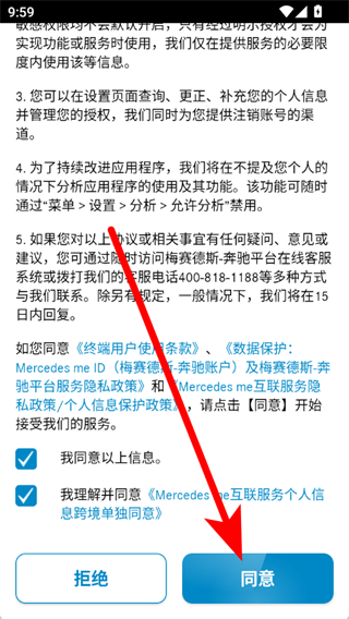 1、打開奔馳,在用戶協(xié)議及隱私政策彈窗中,點擊同意。