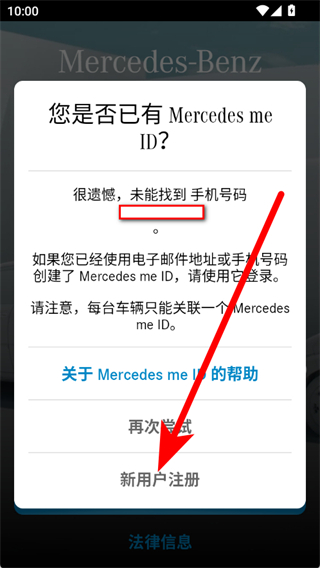 2、進入登錄頁面后,若沒有Mercedes me ID,點擊新用戶注冊。