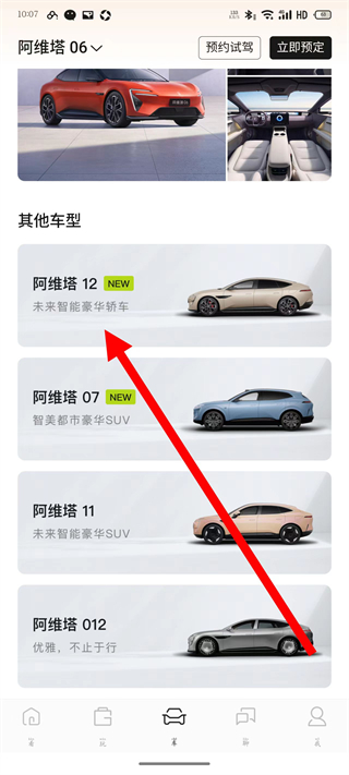 2、在車型頁面,選擇阿維塔12車型,進入介紹頁面。
