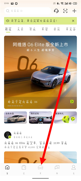 1、打開阿維塔汽車,點擊底部導航欄車圖標。