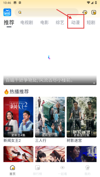 1、打開影視APP,點擊頂部動漫分類,進入動漫專區(qū)。