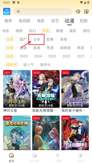2、在動漫專區(qū),選擇日本標簽,篩選出日本動漫內(nèi)容。