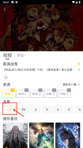 4、在詳情頁,點擊1集選項,開始播放該動漫第一集。