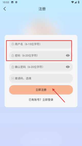 4、在注冊頁面,填寫用戶名、密碼等信息后,點擊立即注冊按鈕,完成賬號注冊。