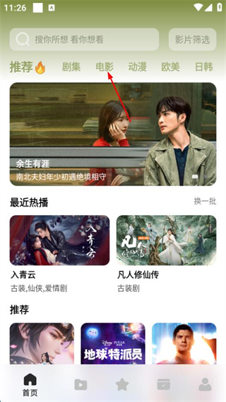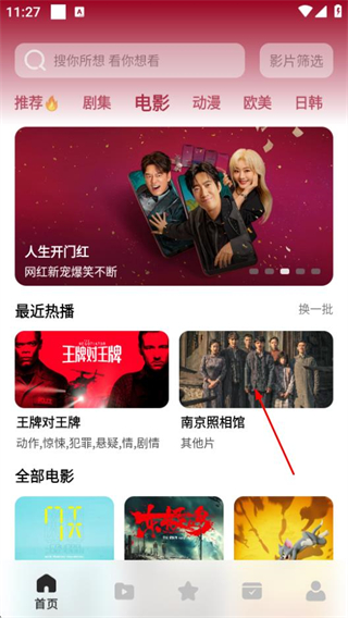1、在鯊魚劇場首頁,點擊電影分類選項,進入電影頁面。