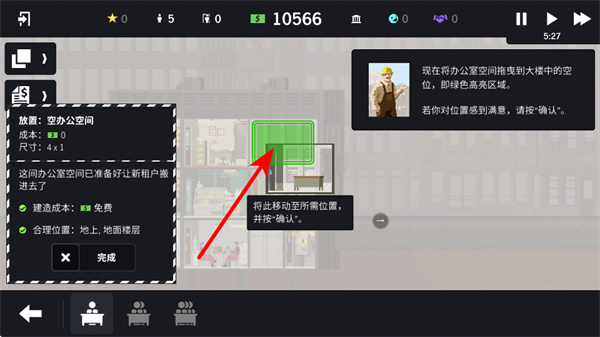 2、將辦公室空間放置到大樓的空閑區(qū)域,空間放置是完成辦公區(qū)域建設(shè)的核心步驟,精準(zhǔn)放置可充分利用大樓空間,提升收益。